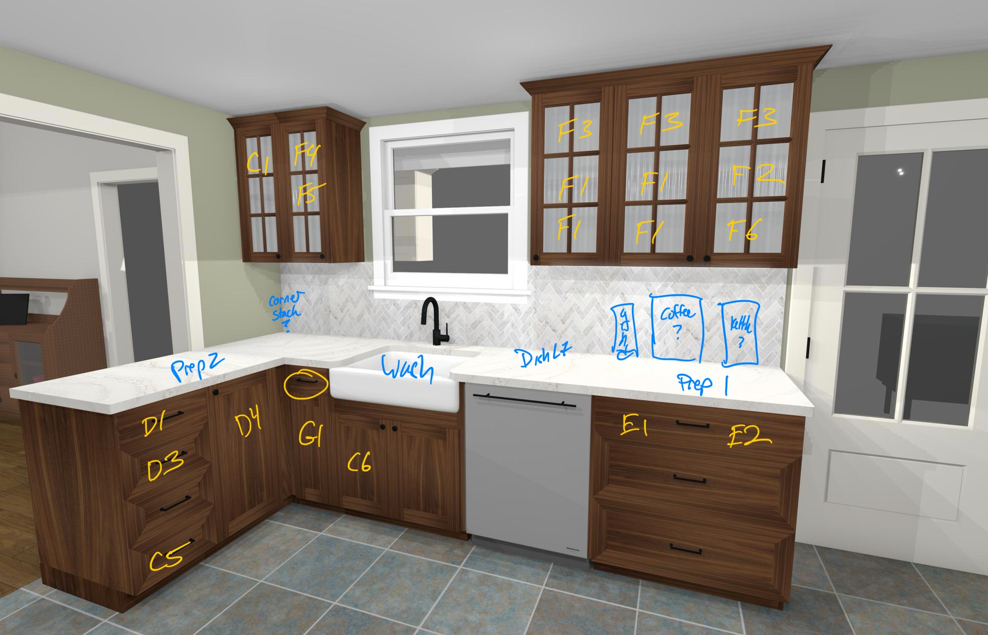 What are your thoughts on increasing the drawer height on B1D1DR? I’m thinking dishtowels in the circled drawer to left of sink, and cutting boards below. Deeper drawer would make it more usable and bring lower door in line with the under sink doors.